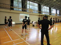 男女に分かれ、体育館の両サイドの壁面に映像を映して、振り付けの練習をしています。