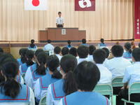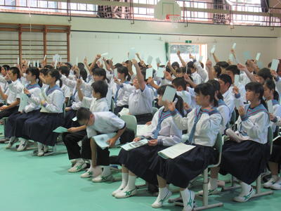 校長の話の中で、例えば「総会で話し合われたことを、後期の活動に生かしましょう」の「生かす」とは、具体的には「行動すること」(やってみる)であるとの、市生徒会長サミットでの話を紹介しました。