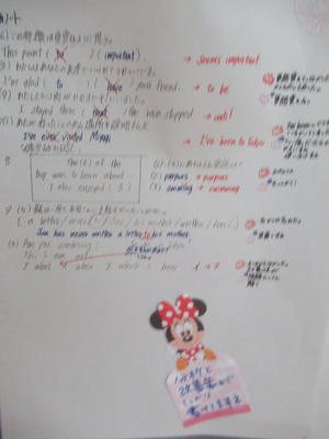 2019年10月4日 10時10分3年生の教室前廊下に、英語の中間テスト反省ノートが、数名分掲示されています。