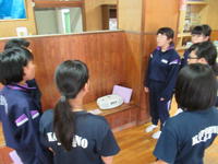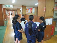 女子の片方のパートは、交替で、昇降口前でCDを聴きながら、練習しています。