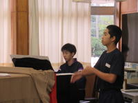 2019年10月7日 08時32分音楽室での練習です。パートごとに曲のある一節を、指揮者の指示で練習しています。