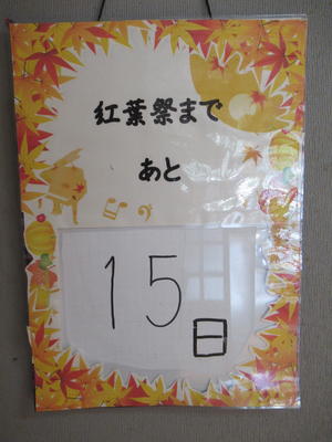昇降口にはポスターが掲示され、1・2階廊下には、カウントダウンボードも設置され、学校中が紅葉祭モードになってきました。当日は、生徒たちの学習(練習)の成果を、保護者や地域の皆様にもご覧いただきたいと思います。