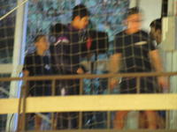 〔実行委員:進行や照明の打合せをしています〕*体育館