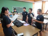 会議室及び廊下付近での練習です。4つのグループに分かれ、それぞれにソプラノ・アルト・男声パートが入り、課題曲及び自由曲を練習しています♬(アンサンブル形式の練習というそうです)