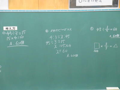 問題⇒ビーズを姉妹で分けるのに、姉と妹との比が4:3になるようにする。妹のビーズが45個のとき姉のビーズの個数は?