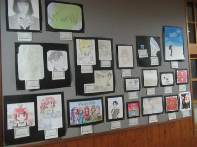 2階、家庭科室前廊下に掲示&展示してあります。9月から頑張って仕上げました。どの作品も、個性溢れる素敵な作品です。中には、プロ顔負けのものも・・