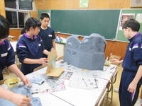 2019年10月11日 18時19分放課後、3年生が美術室で、学年発表の小道具(岩・石など)を作製していました。
