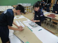 放課後、3年生が美術室で、学年発表の小道具(岩・石など)を作製していました。