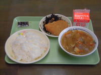 給食メニュー → ごはん 牛乳 かじきかつ・ソース ひじきの炒め煮 八杯汁