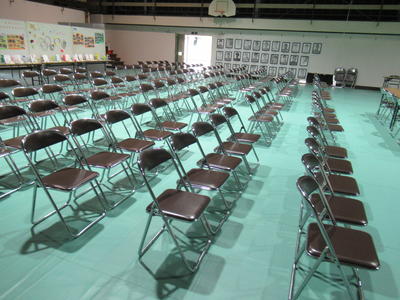 2019年10月18日 15時03分全校生徒がそれぞれの役割分担箇所で一生懸命活動し、短時間でご覧のように立派な会場が出来上がりました。