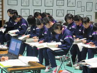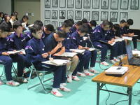 説明会では、今回の入試から大きく変わる県立高校の入試制度を中心に、学年進路担当から資料を使っての説明があり、生徒・保護者の方々はメモをとりながら、真剣に聴いていました。