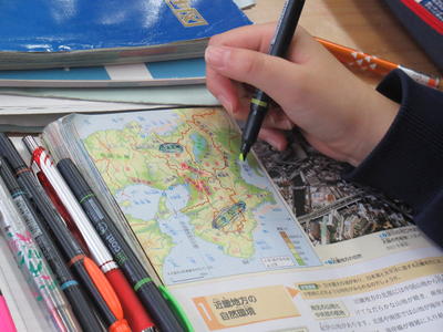 地理的分野、近畿地方の自然の特色を理解する授業です。