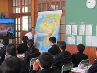 教科担当がアフリカ州の自然の特色を、モニターの映像を見ながら理解させています。