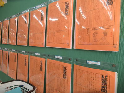 また、教室背面には、先日の文化祭(紅葉祭)のまとめが、新聞形式で掲示されています。