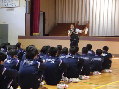 2019年11月6日 16時38分本日の5校時、先週の薬物乱用防止教室でもお世話になった、いわき南警察署 生活安全課 少年警察補導員の長尾実里様、同じくいわき南警察署 スクールサポーターの星 紋三郎様、遠野駐在所主任の髙津恭祐巡査部長がお出でになり、「防犯教室」が開催されました。