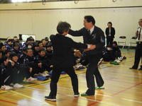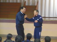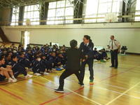 体育館での反省と講評では、SNSの危険性や護身術の実演等もあり、生徒たちは真剣に耳を傾けていました。