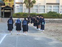 今朝も、当番の生徒たちが、校舎に向かう通路で、元気よく行っていました。