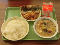 給食メニュー → ごはん 牛乳 さんまの揚げ浸し かみかみ和え なめこと野菜のみそ汁