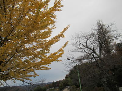 校門脇のイチョウは黄色が濃くなり、徐々に葉が落ち始めています。