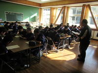 昨日、顧問からの放送による呼びかけにより集まった生徒は、1・2年生男女合わせて約30名。顧問からは、練習の日程及び内容、駅伝の練習をとおして、「勝ち負けだけよりも、体力・精神力、更には人間性を高めて欲しい」との話がありました。