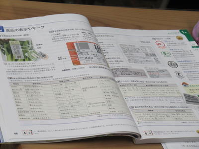 家庭の授業です。「食生活と自立」の単元、「食品の選択と購入について考えよう」の課題で、加工食品の特徴や食品添加物について理解しながら、考えています。身近なテーマであるため、スーパーやコンビニなどで購入する場合を思い出しながら、楽しそうに学んでいます。