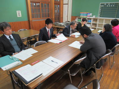 2019年12月4日 16時17分本日4校時の1年生美術の授業に関する事後研究会を放課後行いました。
