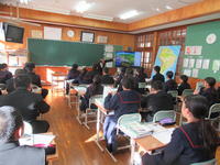 2019年12月6日 10時20分地理的分野、「南アメリカ州」の単元です。モニターの映像資料を観ながら、自然や生活の特色の復習をしています。