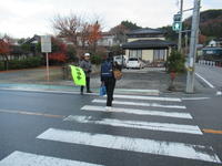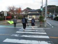 *今朝の学校入り口の横断歩道の様子です。毎朝、小学校の校長先生が、横断する中学生にも声をかけてくださっています。