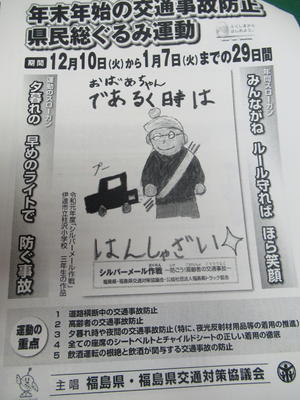 2019年12月10日 08時31分本日より、来年1月7日(火)までの29日間、タイトルの運動のスローガンで「年末年始の交通事故防止県民総ぐるみ運動」が行われます。