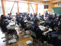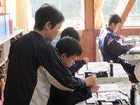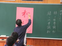 2019年12月10日 09時45分2年生も、今日から書写の授業です。「点画の省略について練習しよう」の課題で、「調和」の文字を練習しています。