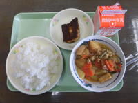 給食メニュー → ごはん 牛乳 さば昆布醤油焼き じゃが芋のそぼろ煮