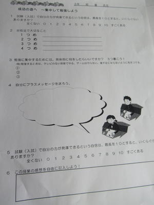 また、SCからは、「受験に限らず、困ったことや悩むことがあったら、いつでも相談室に来てください。」との話がありました。気分転換を上手く図りながら、自分に合った方法でストレスに対処し、受験を乗り切りましょう!