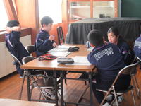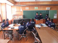 2学期最後の週番引き継ぎが行われています。来週は、2日間であるため努力事項は今週と同じで、各学年で具体的対策を決めるよう、生徒会長が話しています。・・ということで、冬休み明けのめあてについて、各学年で話し合っています。