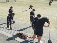 奉仕委員会の当番の生徒が、清掃活動を行っています。