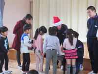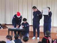 2019年12月26日 11時21分本日の10:00~11:00、本校創作部17名の生徒が遠野保育所を訪問し、子どもたちと交流しました。