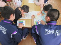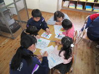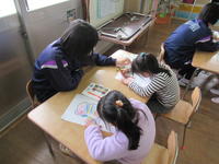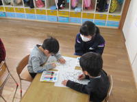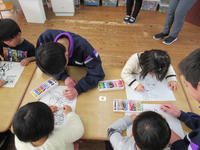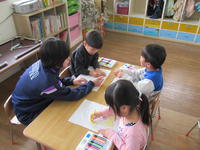 〔各教室に分かれて、子どもたちと一緒に塗り絵をしました〕