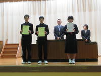 *式に先立ち、2学期に行われた「第15回いわき市ジュニアバドミントン大会」と、「明るい社会づくり運動作文コンクール」の表彰を行いました。