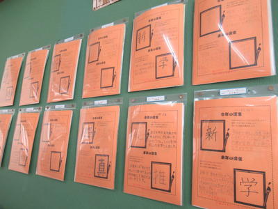 〔おまけⅡ〕*教室背面に、「今年の漢字・来年の漢字」と題した掲示物が貼られています。昨年(2019年)1年間を表した漢字と、今年(2020年)の目標を表した漢字、それぞれ1文字と、その漢字に込められた意味が書かれています。全体的に、今年の漢字は、前向きな漢字が多いですね!