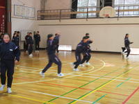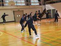 体育館に行ったときは、オフェンスとディフェンスの足の運びを、列ごとに行っていました。