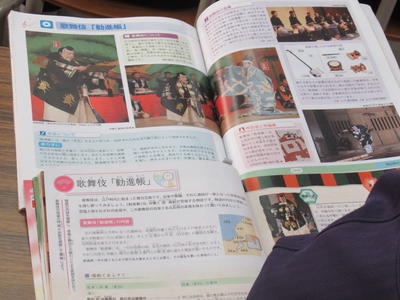 今回の「勧進帳」は、源 義経と武蔵坊弁慶が登場する定番ですが、セリフの言い回しや音楽など、独特の表現がありますね。子どもたちは、気付いたことや感じたことを、真剣に学習ノートにまとめていました。