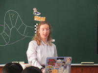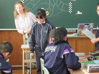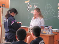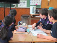 1年生も、シドニー先生の復習を兼ねたグループ対抗のゲームです。廊下を歩いていると、「やったぁ!」との声が・・