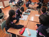 2020年1月20日 14時04分1年生も、シドニー先生の復習を兼ねたグループ対抗のゲームです。廊下を歩いていると、「やったぁ!」との声が・・