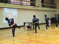 放課後の体力向上タイム、駅伝練習中は校庭が使用できないため、体育館で男女一緒に、「ビリーズブートキャンプ」に汗を流していました。楽しく体を動かせるのがいいですね。