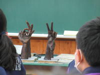 *前の机には、3年生の作品が・・