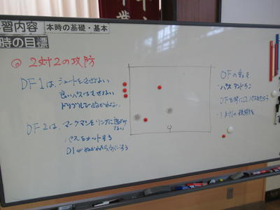 今日のメインは、パス&ラン、DF(ディフェンス)を背にしてパスをもらって、攻撃する練習です。
