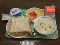 給食メニュー → 食パン りんごジャム 牛乳 オムレツ・トマトソースかけ