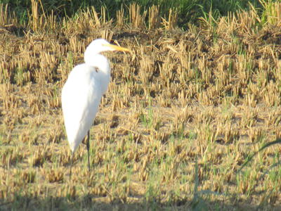 〔おまけ〕稲刈りが終わった田んぼに、いつも?のシラサギが・・