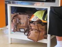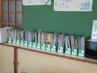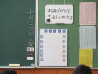 〔3日間の仮教室:家庭科室〕*ロッカーがないので、サブバックは机の下のスペースに・・