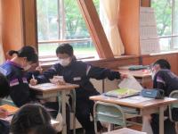 2021年5月16日 14時54分先週の金曜日の5校時に行われた授業です。「文字式を使って説明しよう」の単元、「文字式の利用」について、「3つの続いた整数の和には、どんな性質があるかな?」の課題について、予想を立てて、更に真ん中の数をnとして計算し、規則性を考えています。いつものように、周囲との意見交換もしっかりと行っています。さて、どんなことが分かったでしょうか?