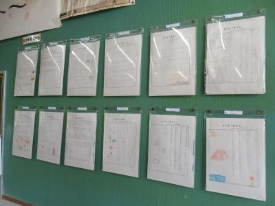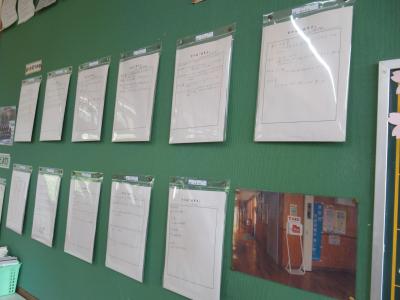 教室の背面に、国語の授業で学習した「枕草子」をアレンジして、「自分流:枕草子」の作品が掲示されています。